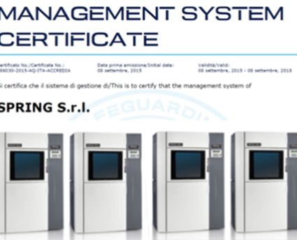 - Spring Srl acquisisce le certificazioni ISO 9001 e AS 9100 per la produzione di manufatti in additive manufacturing per il settore aeronautico e difesa.
