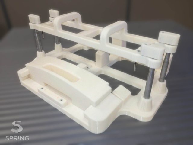 Per l’esecuzione della dima abbiamo utilizzato la tecnologia FDM realizzando le parti in ASA. La scelta di utilizzare il processo FDM (Fused Deposition Modeling) e il materiale ASA, impiegando la modalità di costruzione alleggerita, garantisce un’ottima stabilità dimensionale, un’ottima resistenza alla torsione del pezzo, buona resistenza agli urti e ai raggi UV. I sistemi di produzione interni in grado di produrre parti fino a 900x600x900 mm hanno inoltre permesso di realizzare le parti monolitiche.