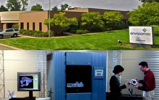 Envisiontec presenta il sistema DLP, una tecnologia che impiega fotopolimeri e un processo a luce della Texas Instrument per rendere i fotopolimeri resistenti.