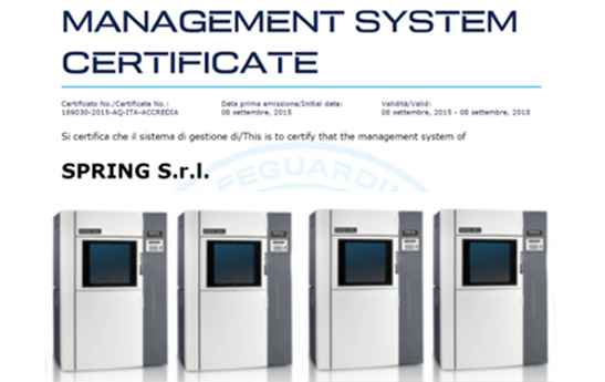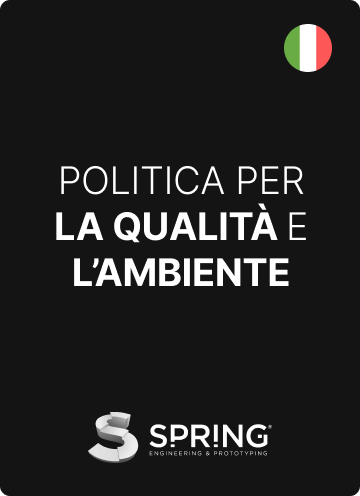 In Spring Srl crediamo che garantire una costante qualità e affidabilità dei prodotti e servizi offerti sia fondamentale per la soddisfazione dei nostri clienti. Operiamo in settori altamente tecnologici e ad alto tasso innovativo dove spesso sono richiesti specifici requisiti di conformità a legislazioni e regolamenti. Per questi motivi l’azienda ha intrapreso negli anni un percorso di qualità interno, ottenendo importanti certificazioni come la ISO 9001:2015 e la AS 9100:2018 e abbiamo definito un Sistema della qualità interno che conferma l’interesse dell’azienda nel raggiungimento della massima efficacia/efficienza dei processi produttivi.